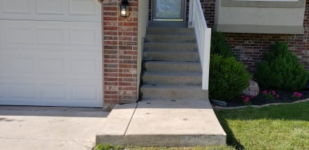 Wellsville front steps. Two other companies said couldn't be done because of the heavy brick column.